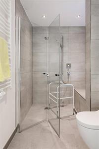 Abgerundet wird das Ganze durch ein komfortables Dusch-WC AquaClean von Geberit.